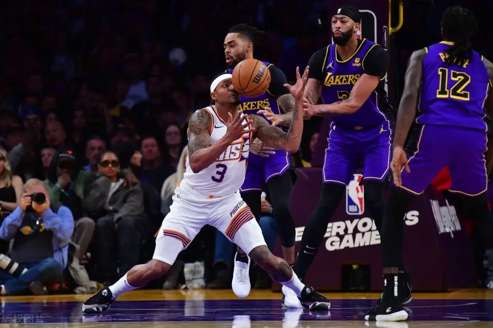 布克更是状态神勇,他里突外切,用各种方式得分,打得湖人防线千疮百孔。