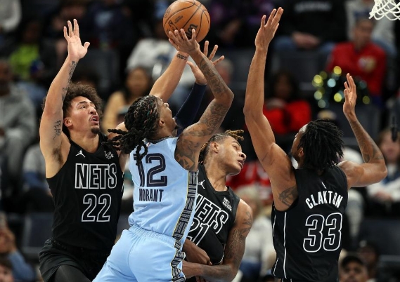 莫兰特在比赛中展现出了超强的个人能力,全场斩获 28 分 7 板 10 助,他灵动的突破和极具创造力的传球,盘活了整个球队的进攻,多次撕开篮网的防线,为队友创造出绝佳的得分机会,让灰熊的进攻如水银泻地般流畅。贝恩也有着 21 分 4 板 8 助 2 帽的全面表现,他的三分球在关键时刻给予球队有力的支持,稳定了球队的领先优势。同时,灰熊的整体防守也十分出色,他们积极地轮转补位,对篮网的外线投篮进行了有效的干扰,迫使篮网出现多次失误,并利用这些失误快速反击得分,进一步扩大了领先优势。